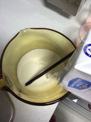 我个人喜欢这个时候加牛奶!一来甜度好掌握,二来为之后加快冷却速度