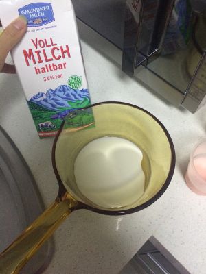 取10-12颗QQ糖放微波炉25-30秒 加入适量牛奶