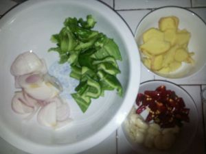 青椒,洋葱,生姜,蒜子,干辣椒,按自己洗好切吧切吧,备用