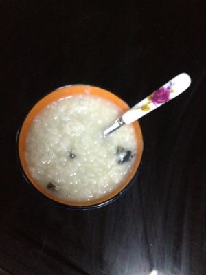 熬好的粥里放少许胡椒粉、盐、鸡精调味,最后滴几滴香油撒上香葱末就完成了。