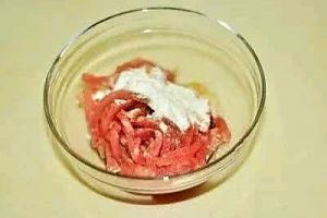 1.猪肉切成薄片或肉丝,加些许料酒和淀粉腌制约10分钟