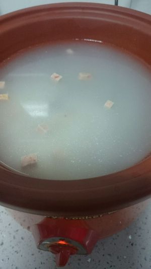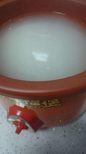 电炖锅放开水,加入洗好的米,低温,大概30分钟
