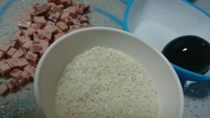 将大米洗净,历干水,加点盐,加一勺油拌匀,腌制半小时