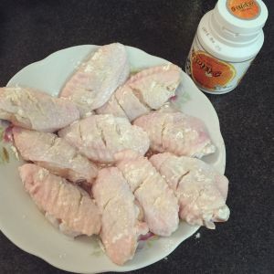 鸡翅洗净用料酒、盐、胡椒粉腌制15分钟。