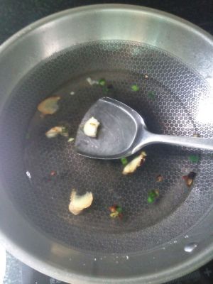 老干妈和花椒粉,辣椒切碎,大蒜切碎炒一下