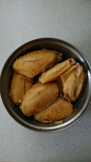 锅烧热。放油烧热。放入姜片。倒入鸡翅煎至微黄。这时候可以到入可乐。大概漫过鸡翅。盖上锅盖焖煮。。差不多的时候放盐,适量。生抽适量。老抽少量。也可以加点料酒。白糖适量。然后盖上盖子大火收汁。成黏状即可盛出。简单易学。开吃。我也是第一次做。