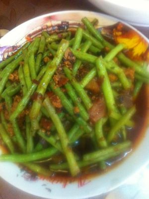 倒入茄子,豇豆一起扁炒,迅速下入糖醋汁➕盐一起炒开大火。炒三分钟左右即可放入鸡精调味装盘。