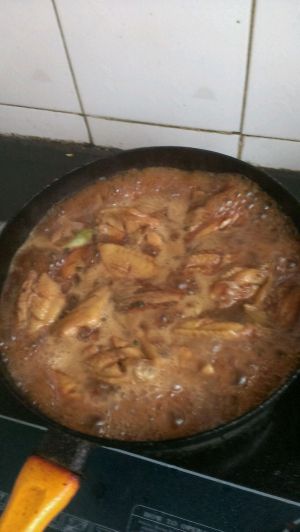锅放油 姜葱蒜 炒出香味 放鸡翅 鸡爪子 大火炒 放酱油 放可乐