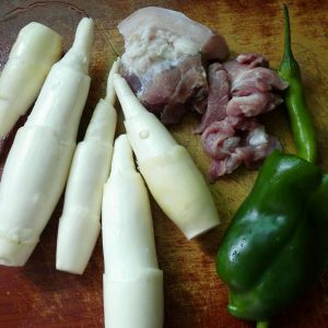 茭白、肉丝、青椒切丝,肉丝用料酒、盐、淀粉腌5分钟