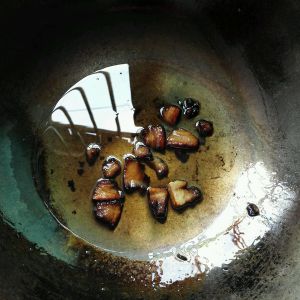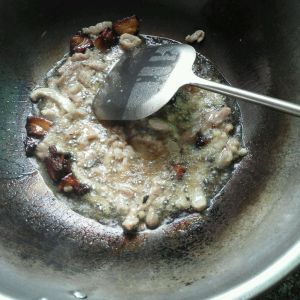 肥肉先熬成油(如果想卖相好点就把肉渣夹掉再放肉丝炒)