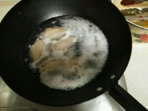 与水一起倒入锅中,大火把血水等东西弄掉。