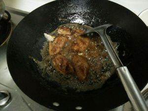 倒入可口可乐,老抽,根据自己的口味加入适量的盐,糖…可乐本身就有甜味,糖可加可不加…中火煮至汤汁收干…