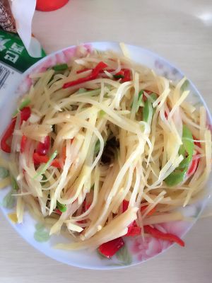 土豆丝用水多洗几遍,洗出淀粉防止氧化