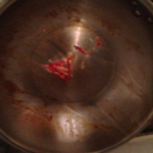 锅烧热后放油,然后下入干辣椒和蒜泥,爆出蒜香味