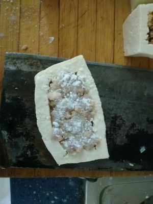 将馅料放入豆腐凹槽中