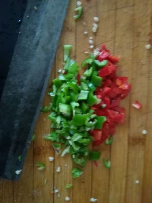 青红椒切成粒