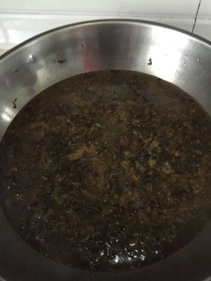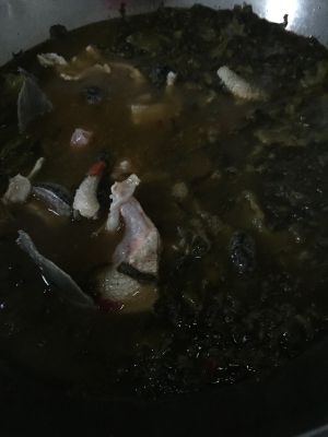 大概这个样子,加开水,下煎好的鱼骨。