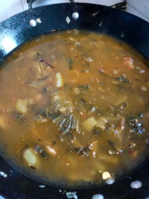 放水后把之前的酸菜放入一起开始煮
