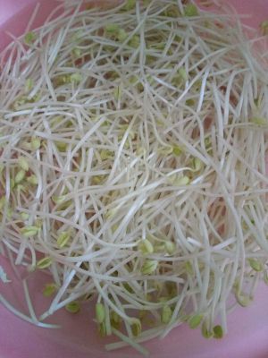 豆芽去根,洗净泡水,备用~