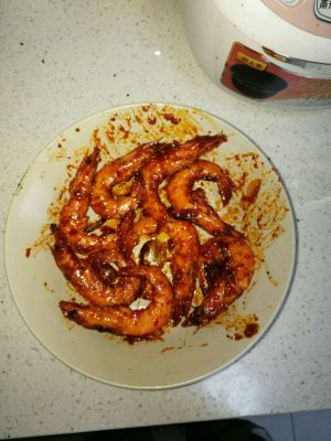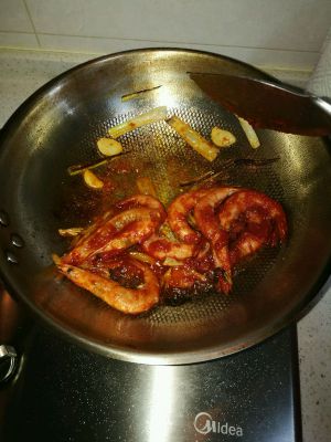 下大虾,加水盖过大虾!焖到收汁~装盘!
