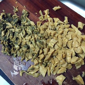 梅菜切碎,可以大块点,随自己喜好。