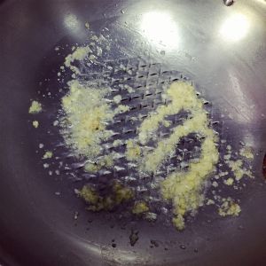 锅内倒入少许油烧热倒入姜蒜爆香。