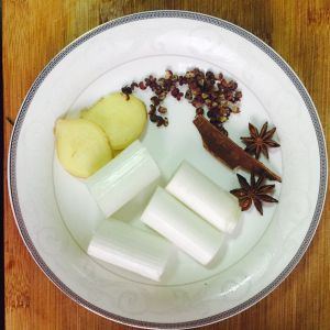 大葱切段,姜切片,香菇掰成两或三瓣洗净备用