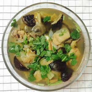 鸡肉剁成小块,下锅焯水,撇掉白沫后,用清水洗净