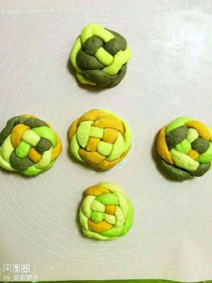 把所有剩下的两色面条,都按十字架编结成圆球状揉捻好。
