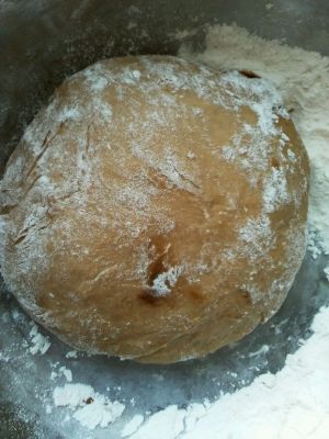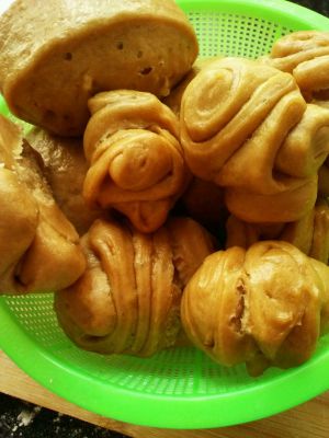 我用了三勺面粉,五汤勺红糖。加酵粉和水揉成面团,醒发。