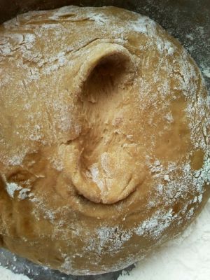 将和好的面团盖上锅盖进行发酵,大约一个半小时,面团发至二倍大;