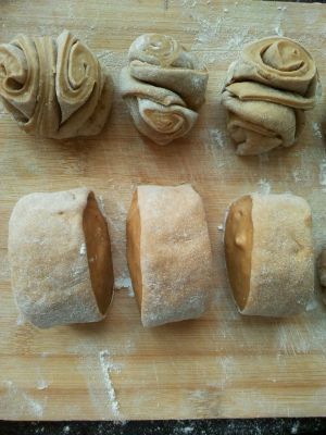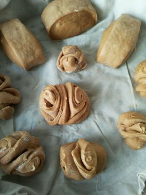 切成小馒头,顺便捏了几个花卷。盖上湿布二次醒发