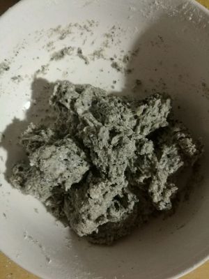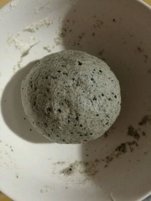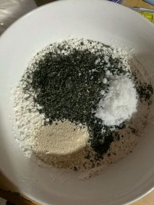 将黑芝麻,糖,酵母,面粉都搅拌在一起
