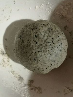 然后向包汤圆一样,把豆沙球包严包实,捏紧收口朝下放置