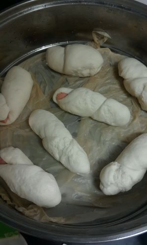 也可以搓成条卷上火腿肠,就变成了火腿卷,小朋友都很爱吃哦