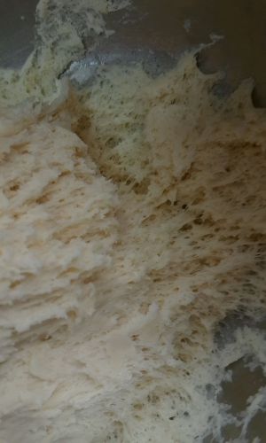发酵到原来的1.5或两倍大就差不多了,手指按下去的洞不会马上回缩,扯开面团会有蜂窝状(很多细密的孔洞)就差不多好了
