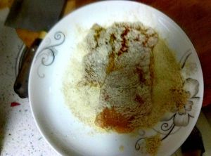 将(2)均匀的撒在鸡胸肉两面,并适当按摩,让其充分入味。静至十分钟
