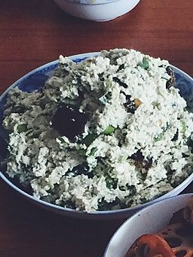 刚才把手洗干净了吧,下手抓,把松花蛋和豆腐葱花抓碎,抓匀。就OK