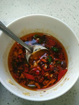 几大勺香醋 两勺生抽 一勺老干妈 一勺香油 搅拌均匀调成酱汁