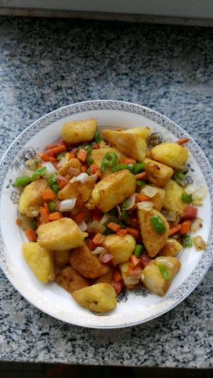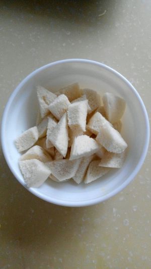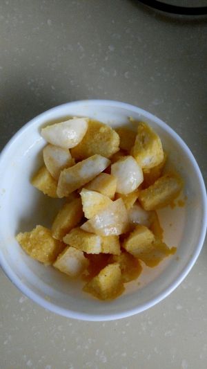 锅中烧热油将馒头炒至金黄色盛出备用。