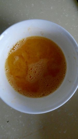 将搅拌好的蛋液慢慢倒入馒头块中搅匀。