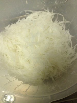 白萝卜变萝卜丝,放盐挍伴,拧干
