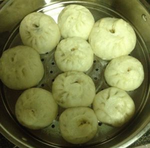 冷水上锅蒸,上汽后蒸13~15分钟即可,闷两三分钟就可开盖了。