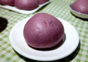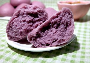 掰开看一下,是不是很漂亮呢。这个馒头因为紫薯含量大,所以馒头很松软,口感很好,很适合老人和孩子吃。如果你也吃腻了大白馒头,可以试试加点儿紫薯,给餐桌增加点色彩吧!