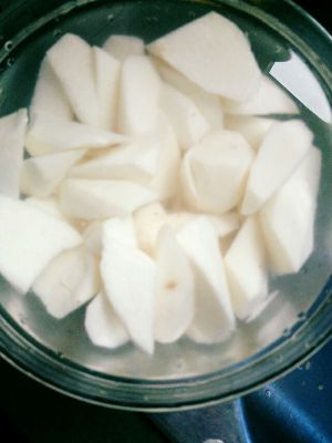 滚刀切好山药。建议带上手套,因为有些人会痒
