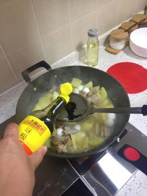 然后加水进锅 水漫过排骨 盖上锅盖 大火煮开后转小火 让他收汁