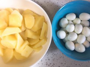 炖肉期间把土豆煮一下,然后把鹌鹑蛋剥好