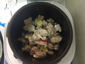 将以上调料和排骨放进电高压锅,炖肉档焖制