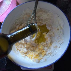 下面做包馅的南瓜馒头,在南瓜泥中放一勺糯米粉