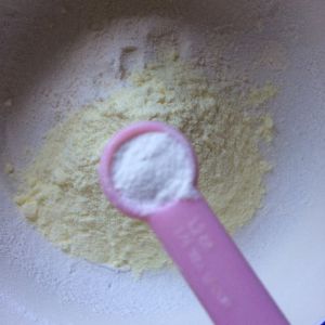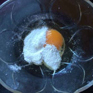先来制作酵头。200g面粉放到案板上,面粉中间开窝,加入3g酵母